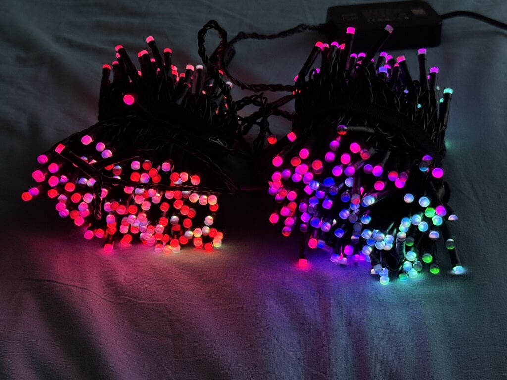 Ce que j’aime beaucoup, c’est qu’en dehors de la période des fêtes, on peut l’utiliser comme déco lumineuse toute l’année. En jouant sur des teintes plus neutres ou des dégradés doux, elle se fond dans l’environnement sans rappeler Noël. J’aurais simplement aimé une version avec câble transparent plutôt que noir, pour encore plus de discrétion.