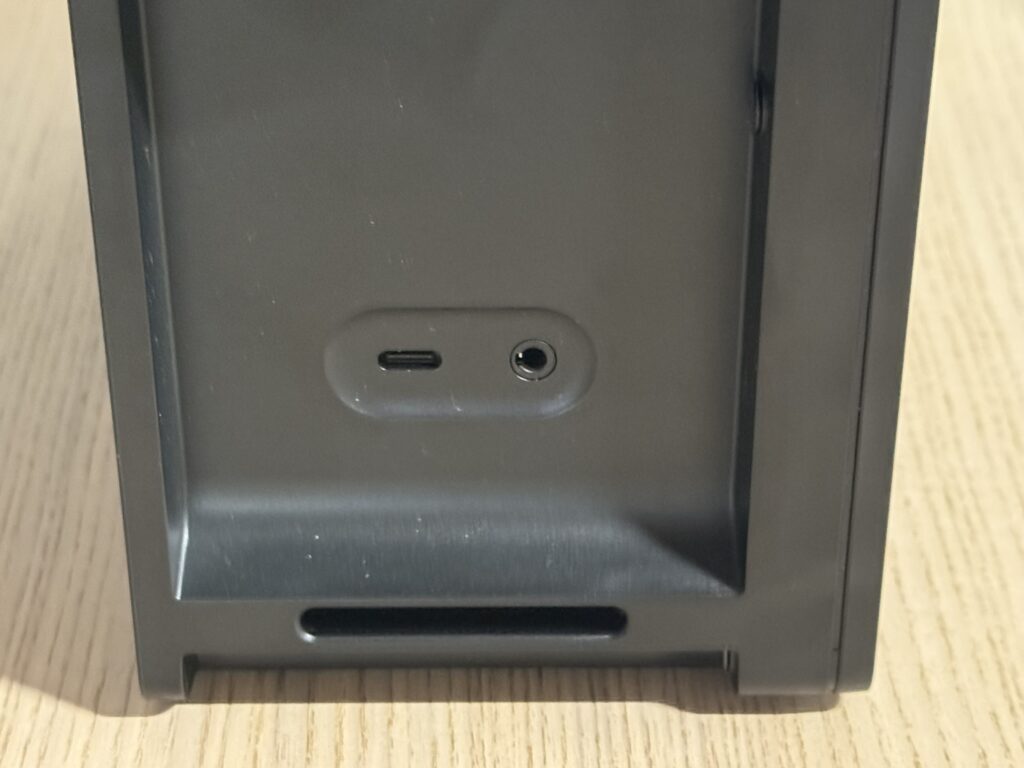L’enceinte propose du Bluetooth 5.3, une entrée mini-jack, et un port USB-C qui permet à la fois la recharge rapide (80 minutes pour une charge complète) et l’utilisation comme batterie externe pour recharger un smartphone. Pratique quand on l’emmène en balade ou en week-end.