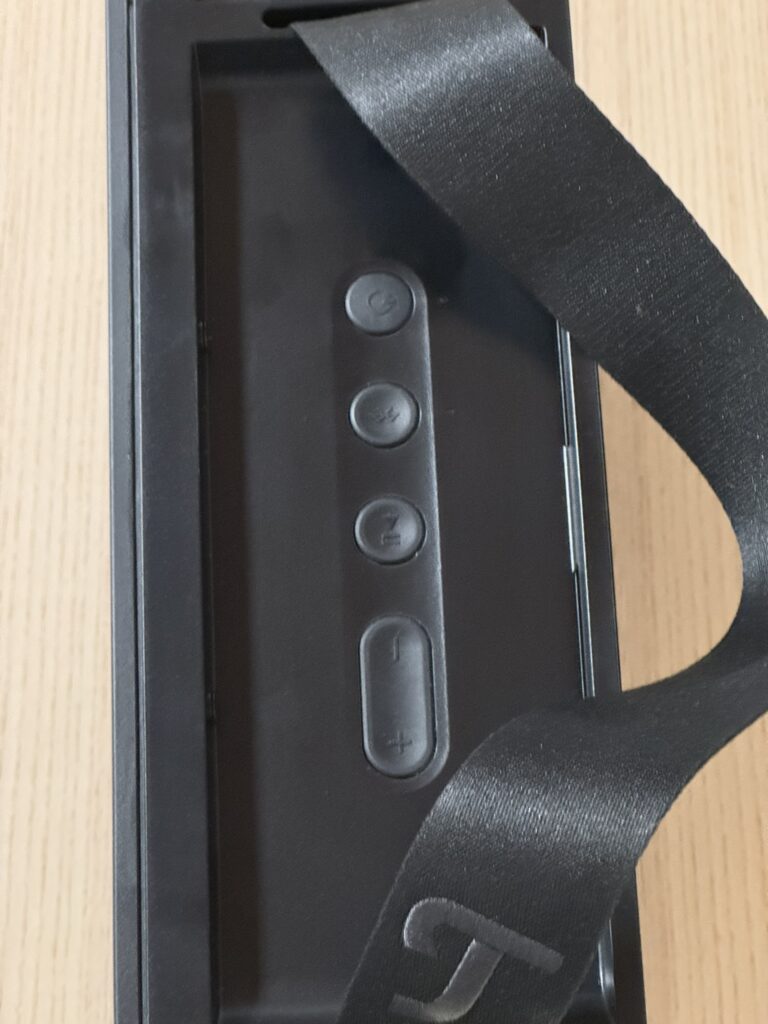 Je l’ai utilisée dans plusieurs contextes : chez moi, posée sur un meuble, en fond sonore pendant une journée de travail, ou plus fort le soir pour la musique. Et aussi lors d’une fête entre amis, en plein air. À chaque fois, elle s’est montrée fiable, avec une connexion Bluetooth stable, une bonne autonomie. J’apprécie aussi le bandeau qui permet de la transporter facilement partout.
